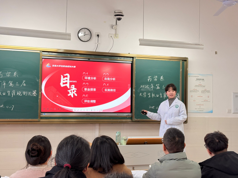 11月17日,药学系第三届大学生职业规划大赛在善治楼6-403成功举办。来自药学系各年级的15名选手在“成长赛道”与“就业赛道”两个组别中展开激烈角逐。