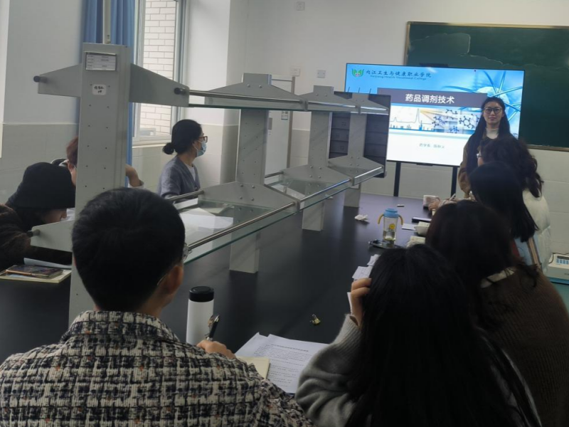 教师陈秋义以“药品的陈列与盘点”章节为例进行集体备课展示,从教学目标、教学设计、教学方法等方面进行了系统讲解。与会教师围绕教学内容优化、案例选取及课件制作等方面进行了深入研讨,积极分享教学经验与改进思路,进一步推动课堂教学质量提升。