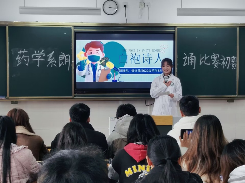 12月1日下午,药学系“品味经典 启智润心”经典朗诵比赛在善治楼6-410教室举行。本次比赛共有药学系9位选手参加比赛。